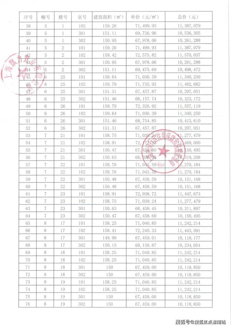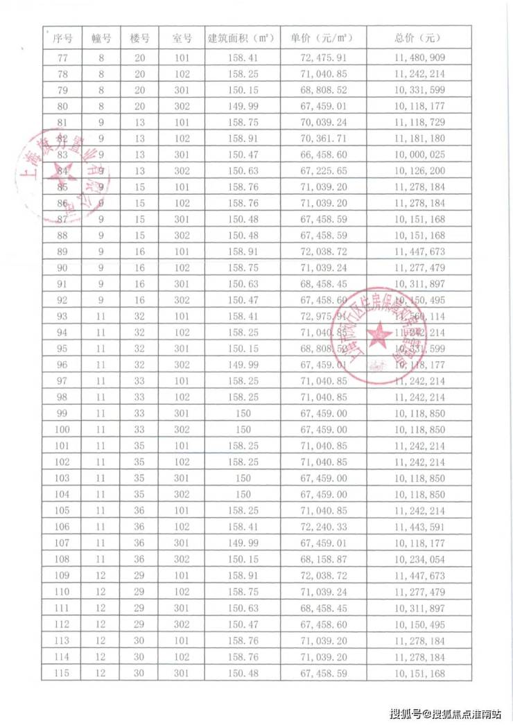 崇明某触发积分项目部分一房一价表