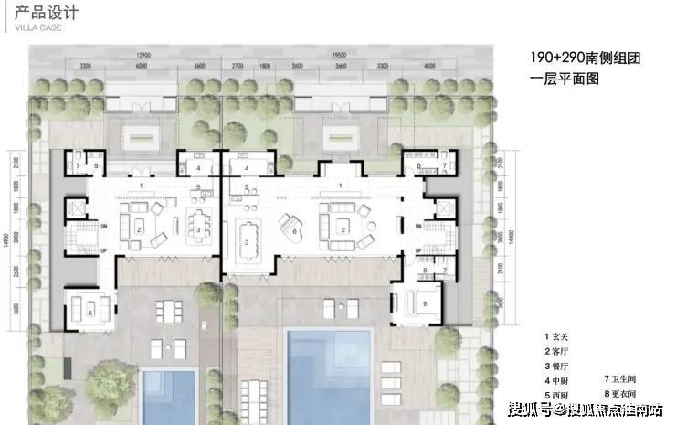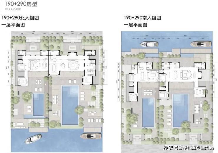 北入户的190+290房型,一层朝南直面庭院和泳池,如果配上整扇的落地玻璃移门......