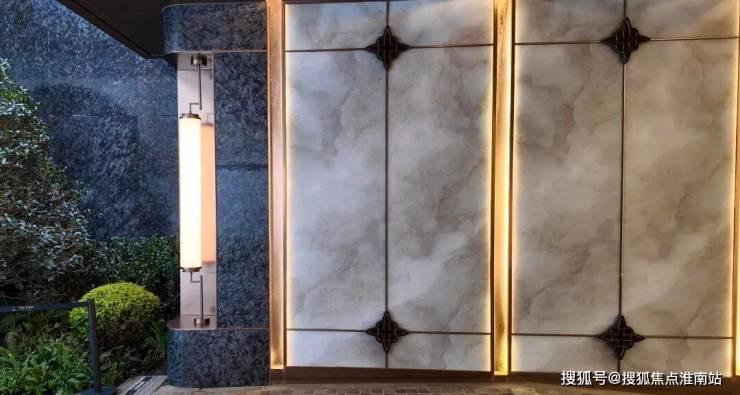 坡道墙面并未采取常规的单一材质,而是选用进口贝金米黄天然石材、透光云石玻璃、金属线条等材料搭配,这些配置几乎全部对标上海高端改善小区的车库标准。
