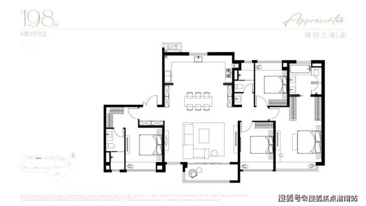 终极改善的顶奢4房!极端宽奢的南北通透户型飞机户型,你能想象到的美好都能在这个户型中体验到。