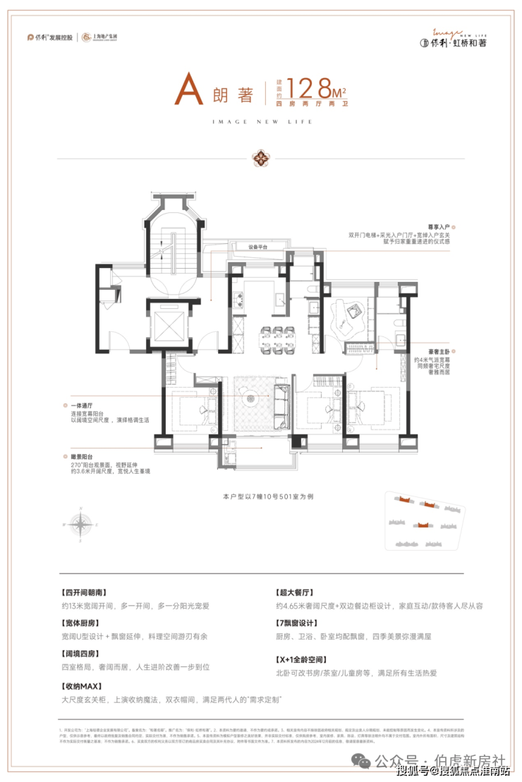 ◎真四开间朝南:据统计,2024年至今的上海新房市场中,建面在125-130㎡产品只有约9%做到了真四开间朝南,而地铁口的4房产品更是少之又少(数据来源于网络)。保利·虹桥和著建面约128㎡户型真四开间朝南,南向总面宽超13米,对比新房市场同面积段常见的10米面宽,采光和视野媲美千万级豪宅。