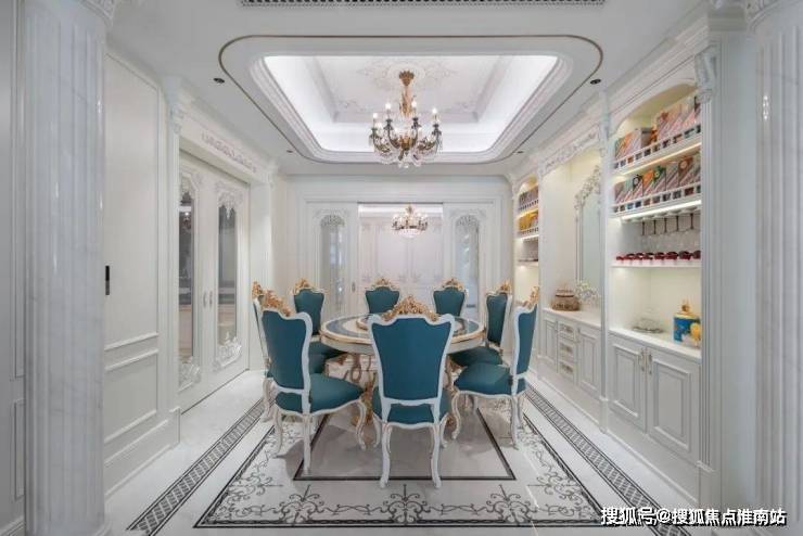 法式风格非常注重对称性,通常以一个视觉中心点,如壁炉展开布置,围绕这个中心点进行对称布局,营造出恢宏的气势和奢华的居住空间。