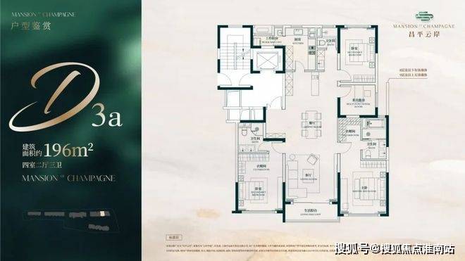 此户型最靠近苏州河,特地设计了270度转角阳台直面苏河一线景观!4个套房设计,尊崇感十足!此户型仅有6套,珍藏属性拉满!