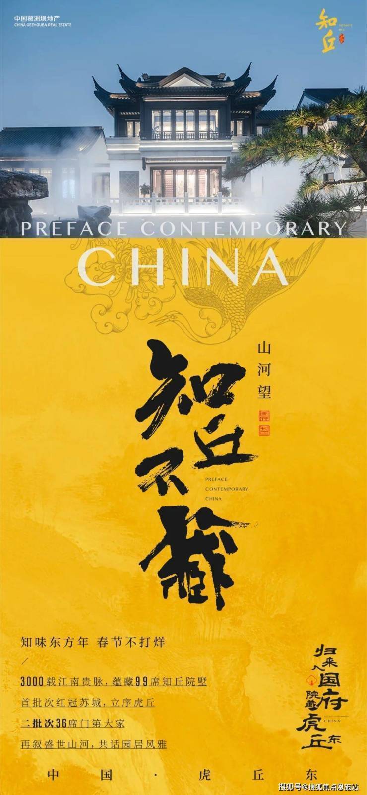 知丘别墅(推广名:知丘别墅,备案名:暂无公开信息,别名:葛洲坝知丘别墅 / 虎阜路518号)是位于苏州姑苏区虎丘山脚下的顶级低密纯墅区,由中国葛洲坝地产打造,定位为“古城内传世级东方院墅”。项目于2020年11月30日首次开盘,目前为毛坯现房清盘阶段,产权为70年住宅产权,可落户、可入学。