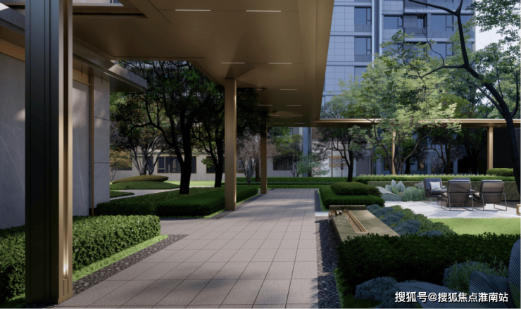 步入庭院,精致会客厅搭配匆匆绿意和层叠水院,颇具层次感的美景让归家的业主瞬间放松,卸下一天的疲惫,也深度诠释了项目归家即是度假开始的设计理念!