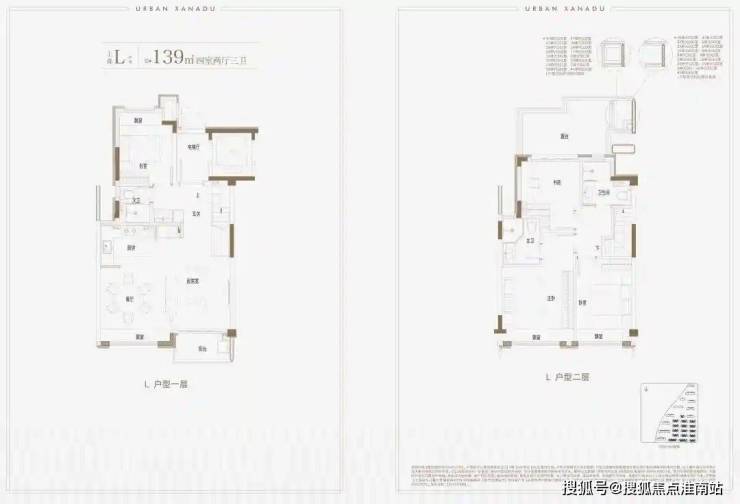 建面约139㎡上叠户型,三层是会客区,四层是居住区,阳台+露台+多个飘窗设计,附加空间非常大,在别墅类产品中实属罕见!