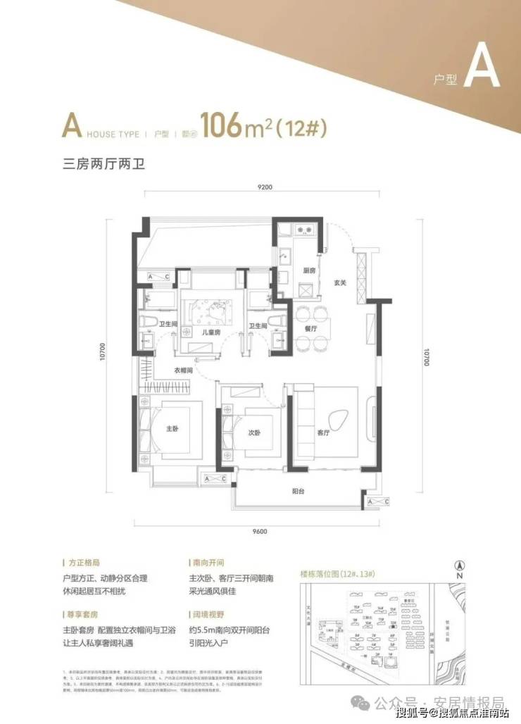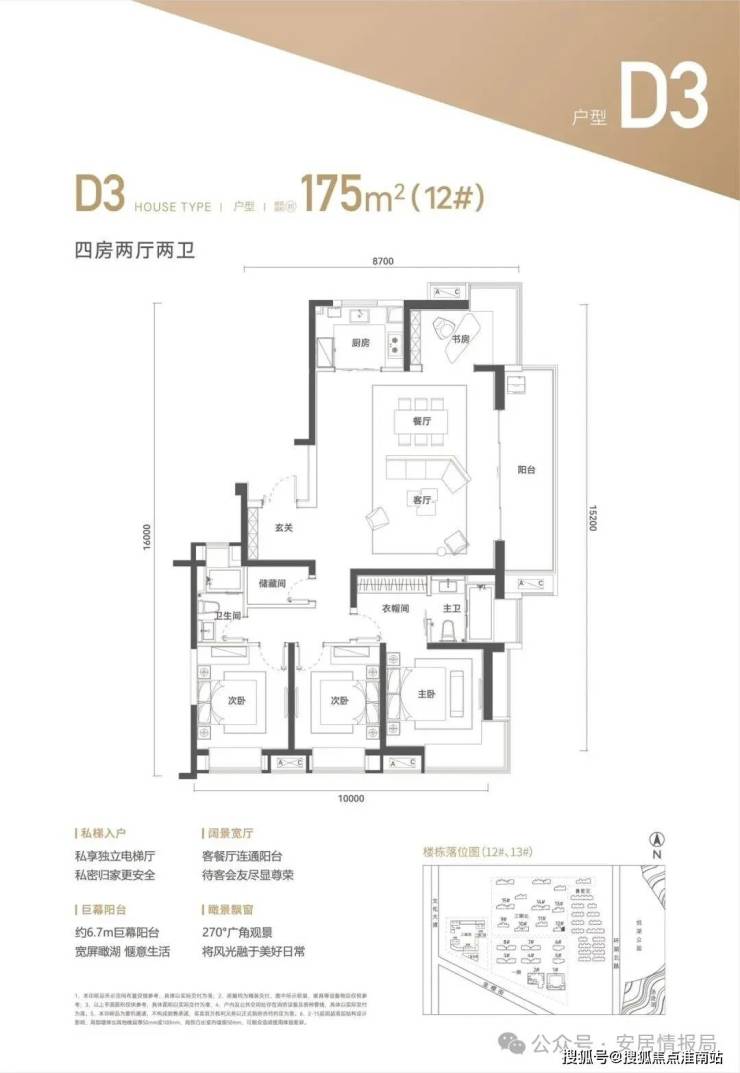 12号楼:143-106-106-175平 4T4户(一个单元,总高45层,公摊24.7%)