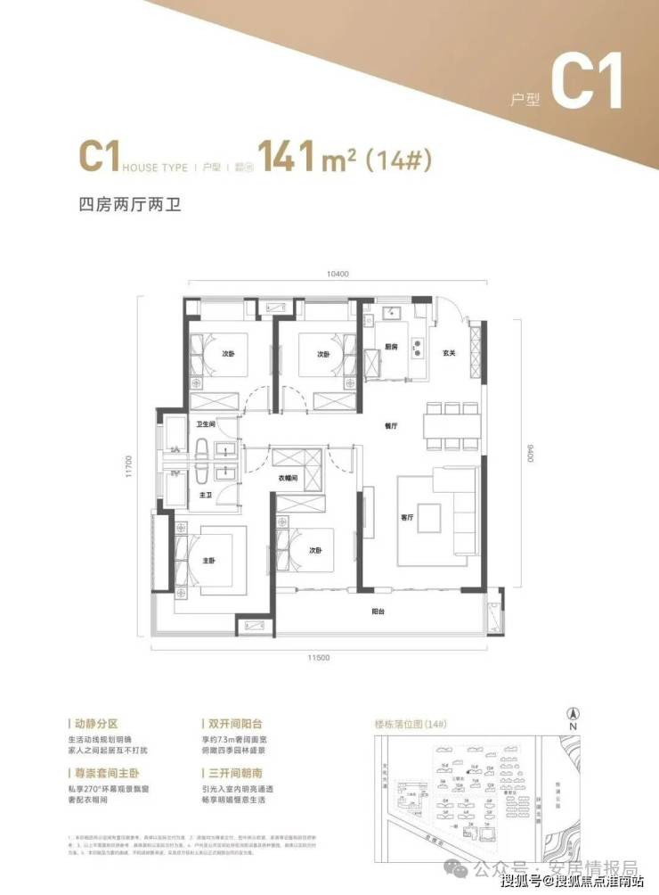 14号楼:140-103-103-128-143-168 3T4户/2T2户(两个单元,总高32层 公摊22.6%-25.4%)