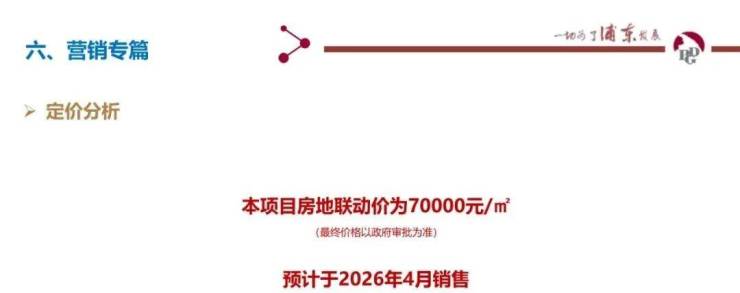 据项目资料显示,项目房地联动价预计约7万/㎡(最终以政府审批为准),预计2026年4月销售。