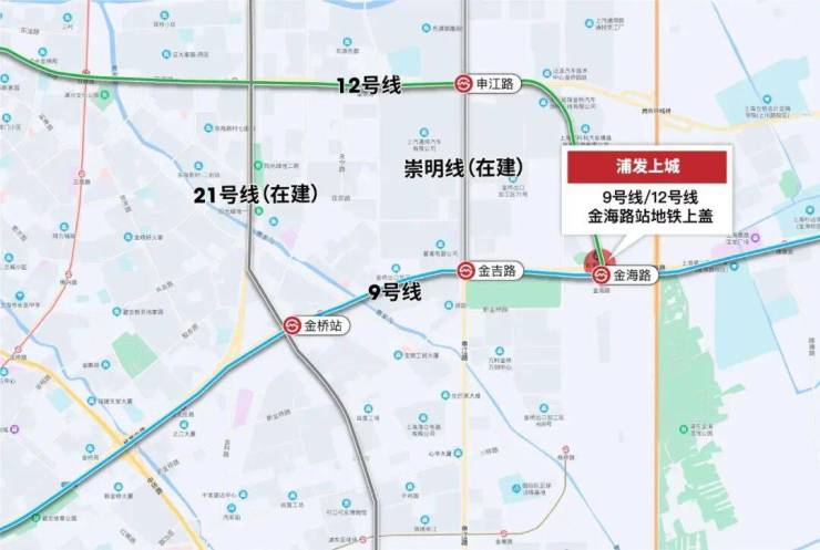 9/12 号线金海路站:步行约200 米(地铁上盖)