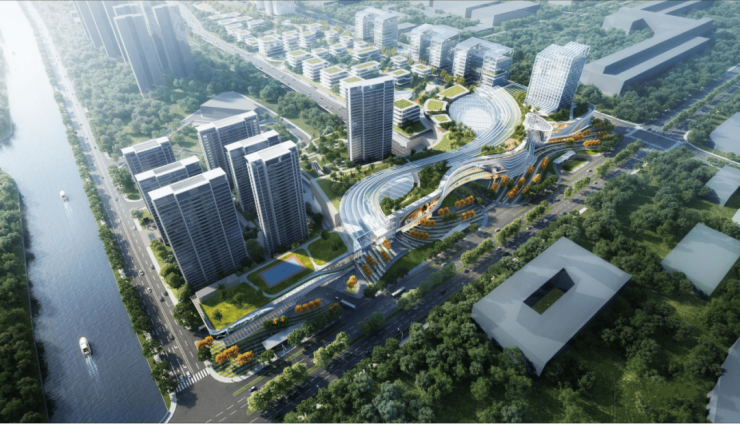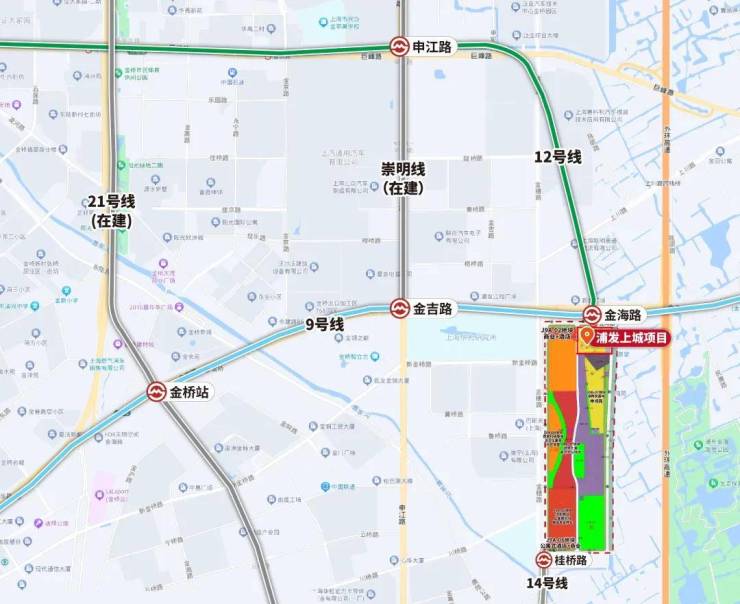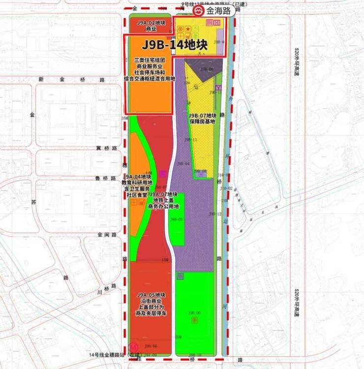 作为浦东金桥的巨型TOD的项目坐落在金海路地铁站的上盖,地铁12号线和9号线直接在项目下方穿行而过,其中,J9B-14地块规划有住宅产品,是9/12号线地铁上盖。