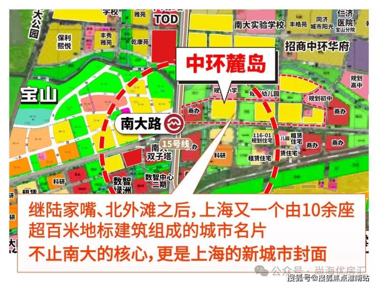 以南大路为核心,周边约100米范围内多座超100米,最高约250米的地标建筑。这里不仅是南大的产城融合中心,更是继陆家嘴、北外滩、前滩以及徐汇滨江的下一个地标建筑群。