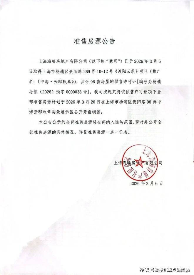 备案名:浩阳云筑(推广名:中海云邸玖章),预售许可证号:杨浦房管(2025)预字0000376号 。