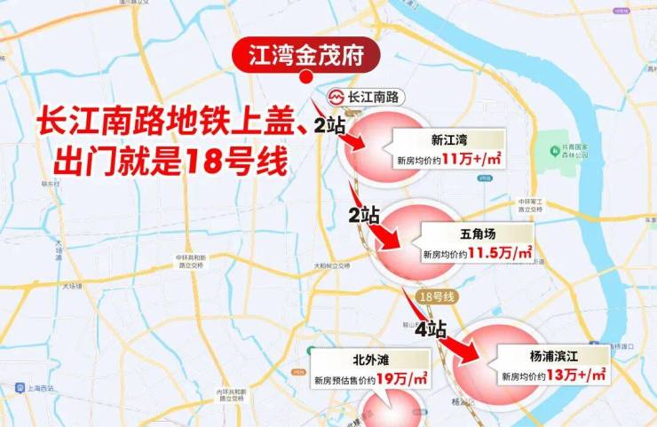 当然,不只是18号线,以江湾金茂府为中心,周边2km范围内,3号线、18号线、19号线三轨交环绕,这立体的交通网络无疑是未来居住圈层,以及二手房价值的坚实保障。