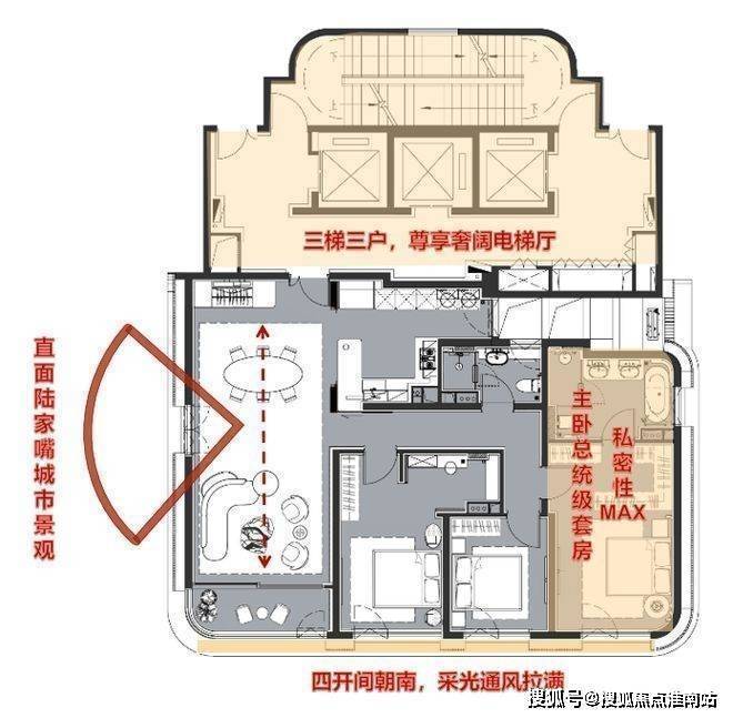 陆家嘴太古源 源邸官方售楼处:400-8818-994户型四开间朝南,三间卧室均享南向采光,客餐厅中部的1㎡观景窗、约270°全景阳台共同将陆家嘴天际线引入室内,高区房源更可远眺江景。陆家嘴太古源 源邸官方售楼处:400-8818-994