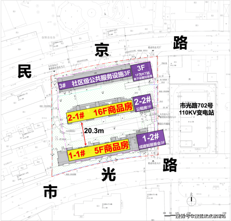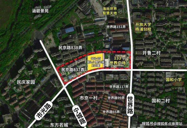项目四至范围:东至002-06地块、南至市光路、西至居民小区、北至民京路。项目总用地面积约7458.94平方米,容积率2.3,计容面积约17155.56平方米。