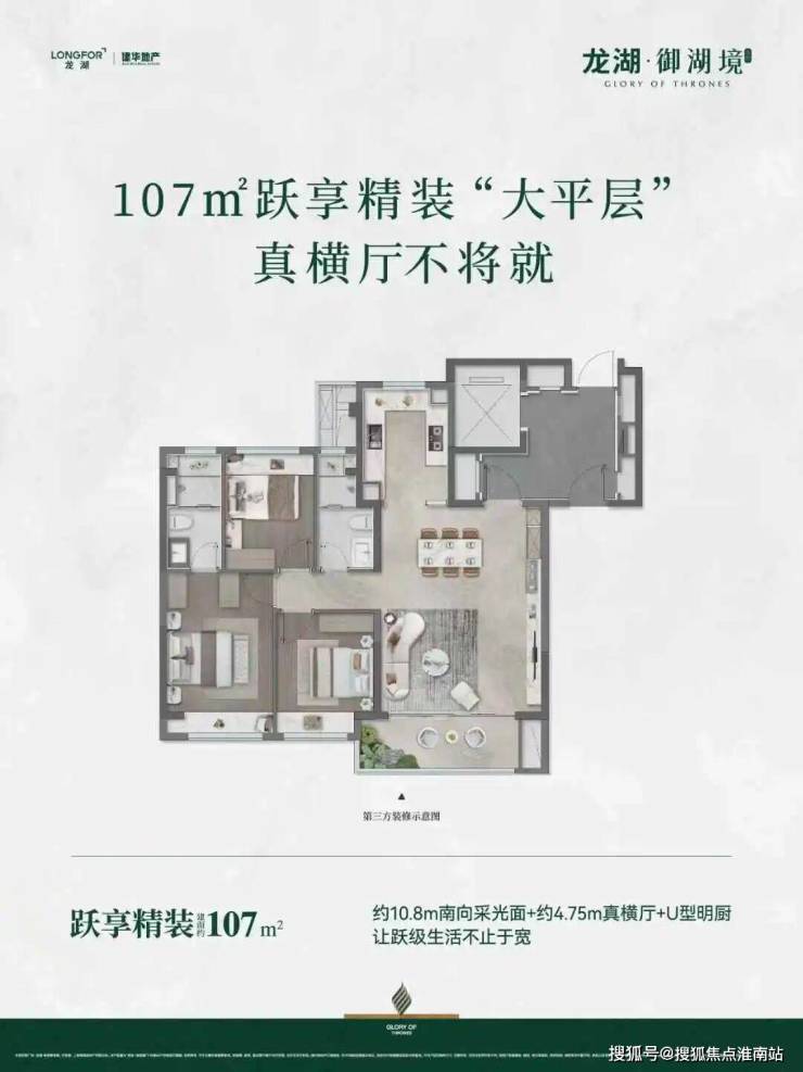 约107㎡精装交付大三房,真横厅不将就,小户型也能住出“大平层”般的越级体验!