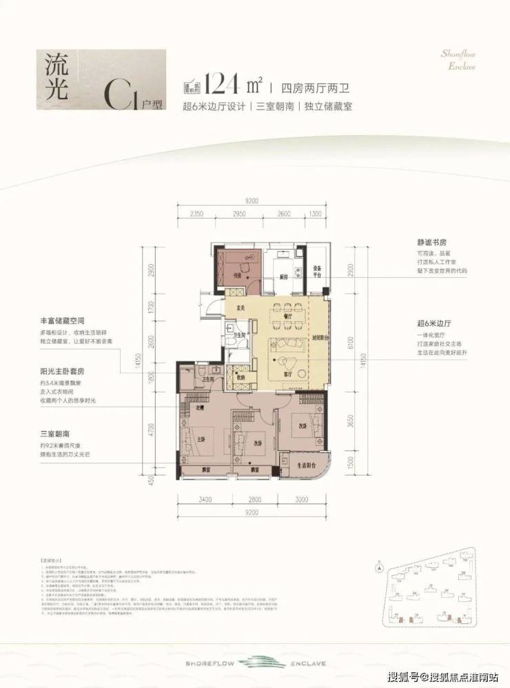 建筑面积约124m²C1户型,四房两厅格局,三方朝南+静谧书房,特别适合像家里有二孩且想改善居住条件的家庭。它最大的亮点就是,一进门便是大边厅 ,外面还连着个约6.1m的大阳台,让整个屋子采光特别亮堂。而且四房的设计,能让家里每个成员都有自己相对独立、不受打扰的私密空间。