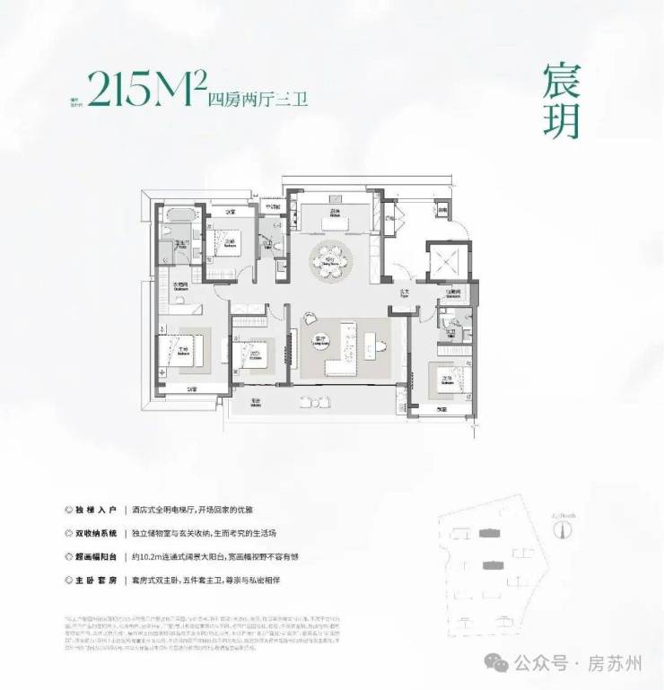建筑面积约215㎡宸玥 四房两厅三卫