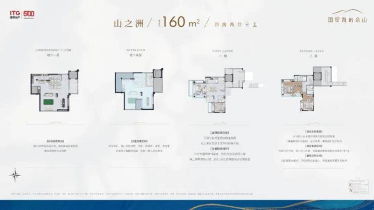 叠墅:主力户型为建面约117–165㎡四房,涵盖上叠、下叠