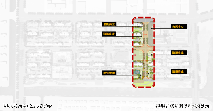 一街为活力商业街,通过纵向布局,在街道两侧配上丰富立体的商业,包括沿街商业、邻里中心、乐活商业街等,满足居民日常的需求。