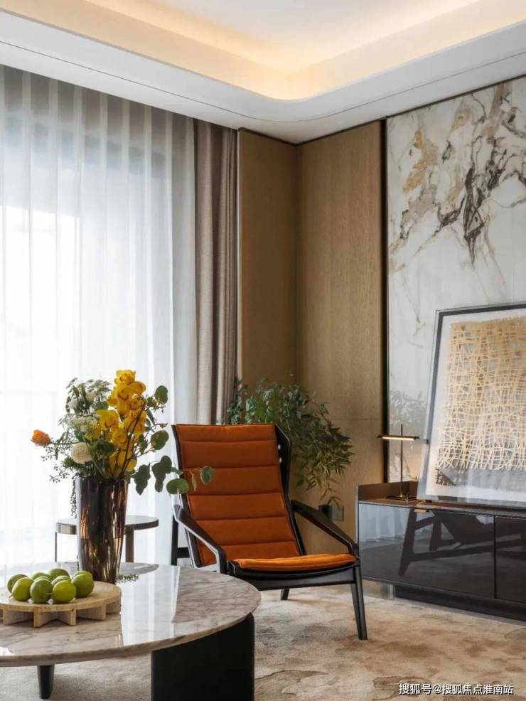 比如,缦云上海的主力层高为3.3米,比市面上的高端住宅高出20-40公分,再配上客厅吊顶采用圆弧设计,让整体空间更圆润更温和,立体空间感更强,视觉上也更宽敞通透。