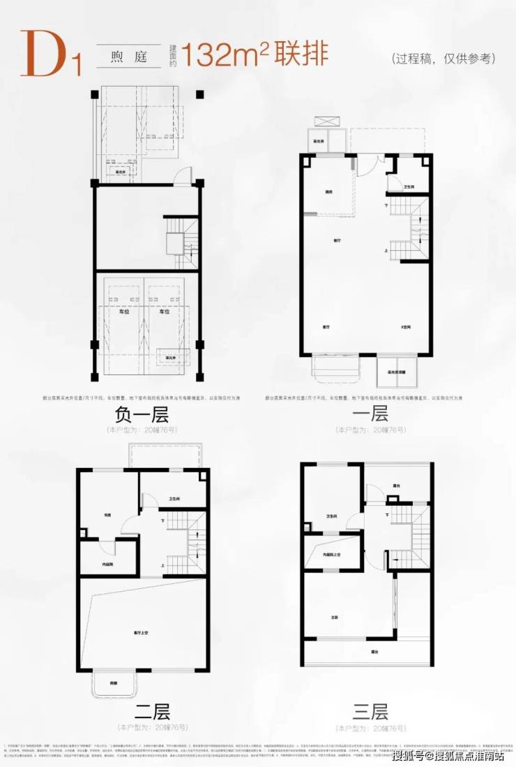 建面约 132 ㎡的 D1 户型(联排) 。乍一看,这是一个地下一层,地上三层的标准联排户型,从户型图上只能看到两个卧室。但仔细看的话,会发现许多令人惊喜的亮点 ~