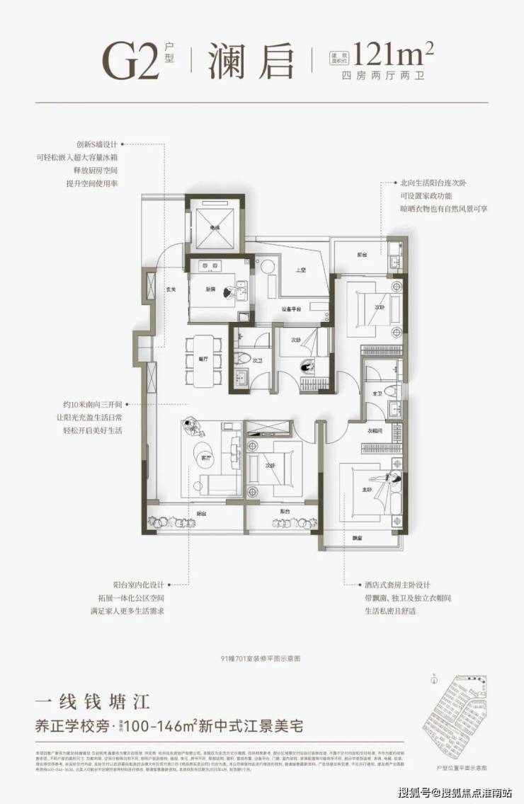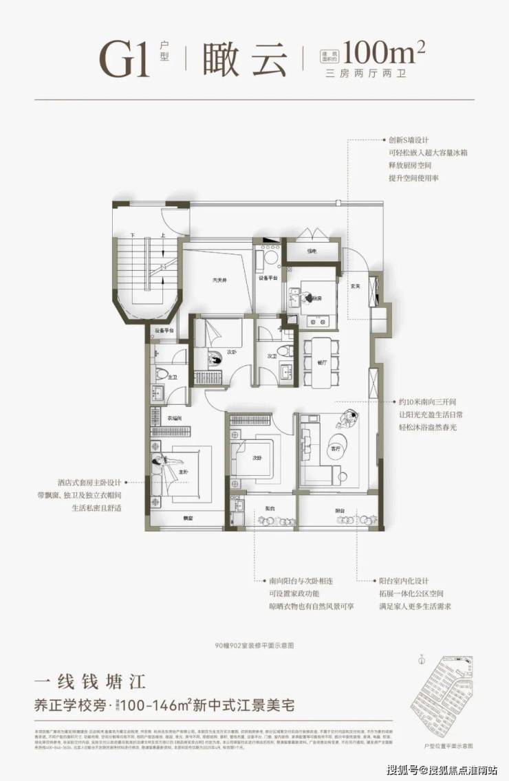 建面约100-146方宽宅,最大化瞰江、景观、采光、通风等,不仅尺度奢适,而且总价可控。