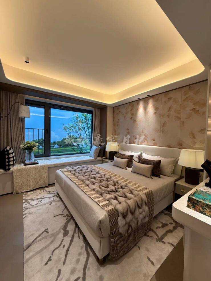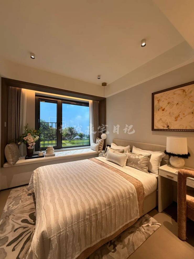 项目建面约143㎡户型的设计无疑是市场一流水准,一梯一户保证私密性和尊崇感;四开间朝南+大宽厅,采光效果爆棚;主卧贯穿南北套房设计,南北都有飘窗,舒适度可圈可点。