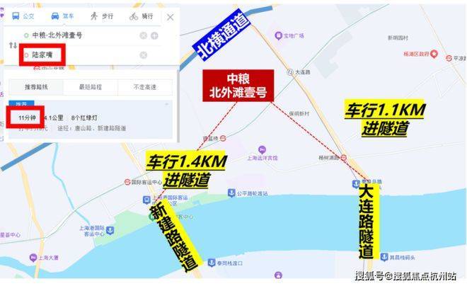 自驾上,项目往北约300米就是北横通道,往南车行约1公里,就是新建路隧道和大连路隧道直达浦东。从项目到陆家嘴、北外滩和外滩都在10分钟左右。