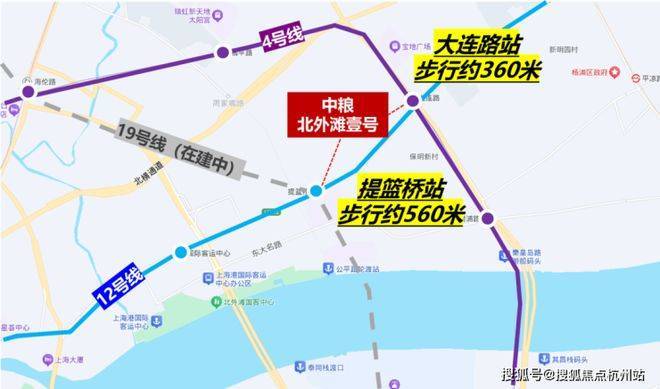 交通方面:项目周围环绕三条地铁,步行约360米到4、12号线大连路站,步行约560米到12、19号线(在建)提篮桥站。