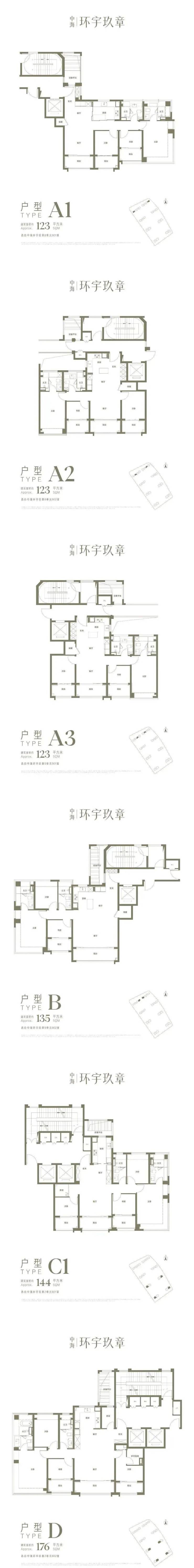 主力户型:建面约123㎡、135㎡、144㎡的三房、四房改善户型。