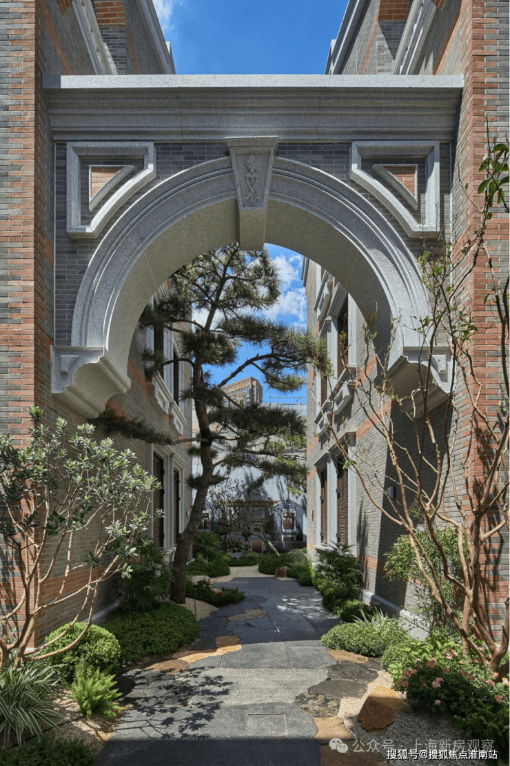 拱形门坊、雕花复刻自湖州会馆,菱形山花还原老建筑印记,红砖清水墙延续衡复经典风貌,让历史与现代共生。