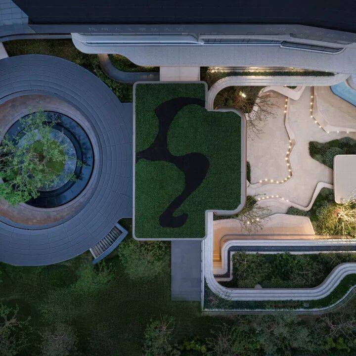 因项目整体抬高,从下沉庭院到架空层“空中花园”的落差极大,形成独特的峡谷地貌,杭序府的设计团队汲取九溪烟树为造园灵感,打造一个立体多维的城市溪谷交互园林;因项目毗邻江岸,杭序府的外立面以“站立的江潮”为灵感,