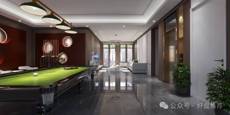 地下一层:配有一个套房,其余为娱乐空间(台球和健身中心等);