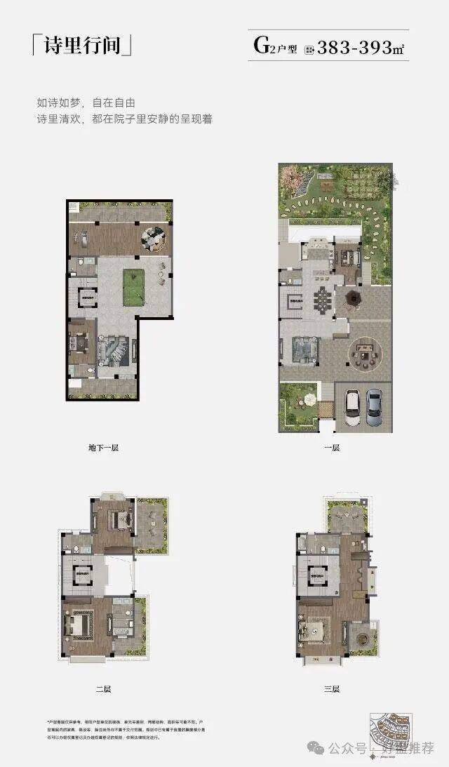 “三代同堂,各得其所。地下一层老人棋牌室,一楼老人房,二三楼私密空间。白塘植物园旁,慢下来享受生活。”