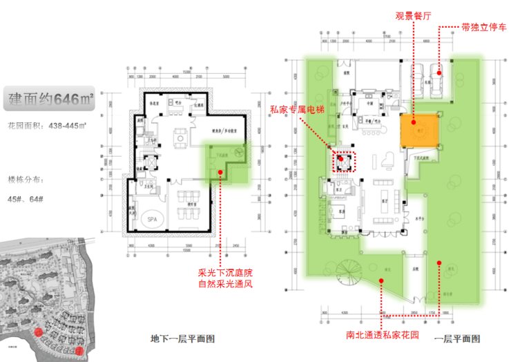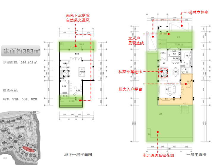 双拼别墅花园全赠送,产品为建面约393㎡的双拼别墅,花园面积251-413㎡,建面约636㎡的独栋别墅,花园面积约438-445㎡。