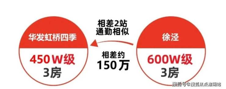和上游板块徐泾相比,同类型房源,选择华发虹桥四季起码立省约 150万