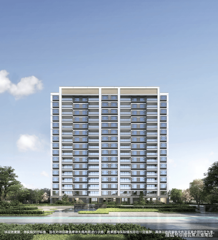 建筑外立面采用 现代简约的风格,搭配有序的横线线条,以米白色为主并搭配一定香槟金暖色调,并利用 大面积玻璃+部分房间近乎 落地窗设计,通过分段式化解建筑尺度,丰富造型,整体时尚且更为耐看