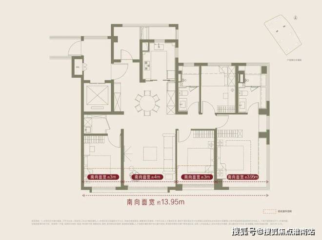 ① 南向面宽近 14m:改善户型的天花板