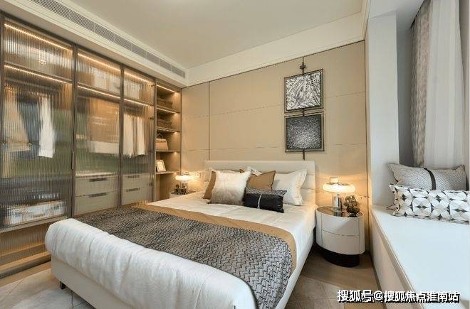 私密场域依旧保持静谧,黑白色基础上搭配了更多的色彩,例如深棕、浅紫等,艺术品的衬托深邃迷人,热络了家的氛围。