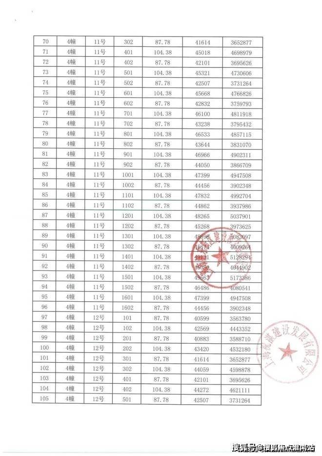 项目一房一价表