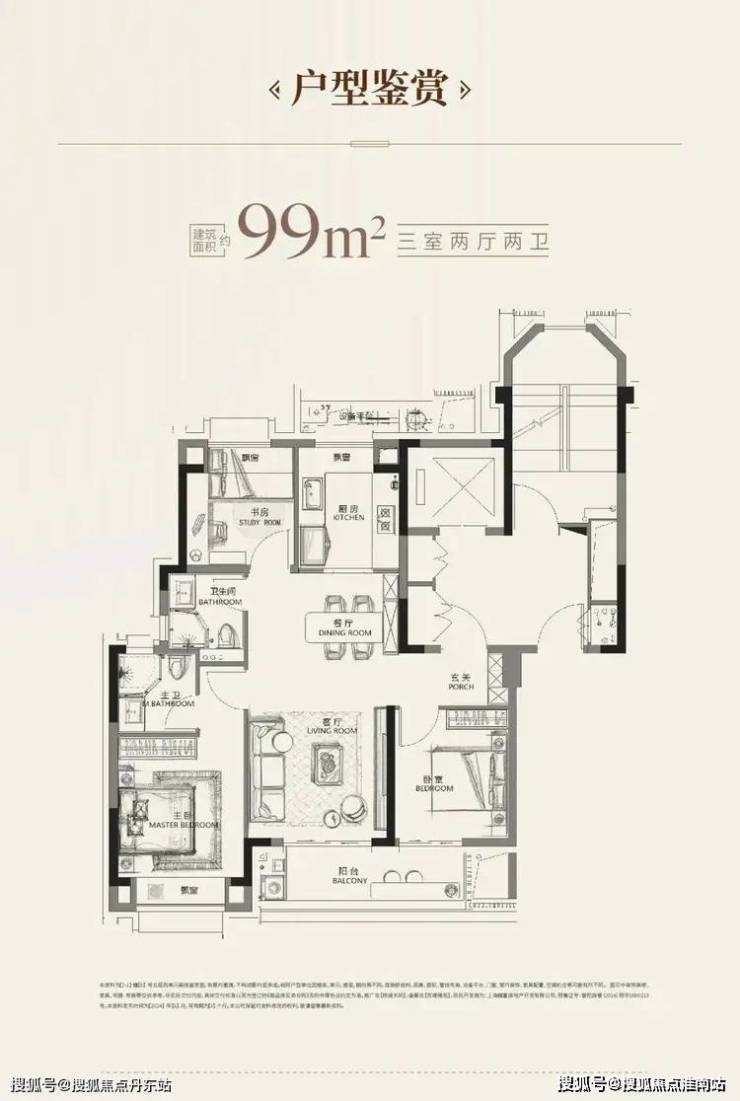 另外,项目整体三开间朝南,主卧带飘窗+一个横跨了客厅和次卧超大阳台,整个南向采光面极其出众。
