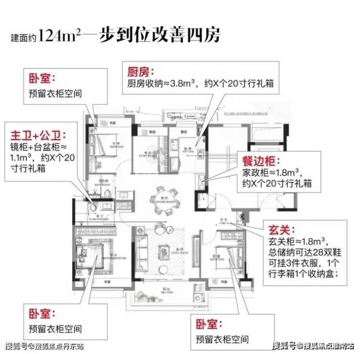 建面约124㎡为5层洋房户型,套数极少,但这真的是上海产品力更高的户型了。