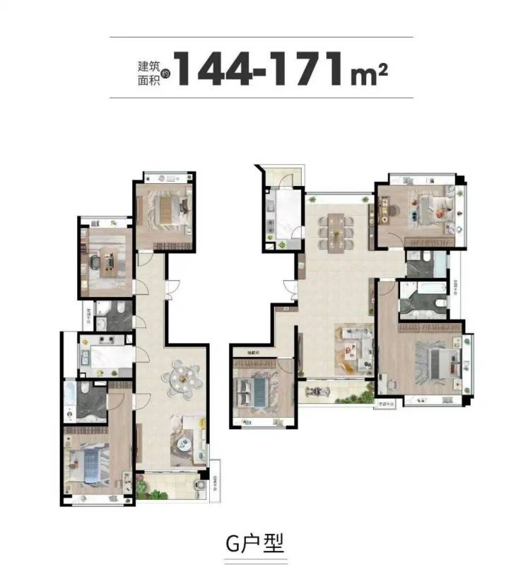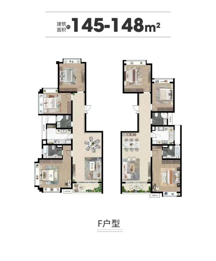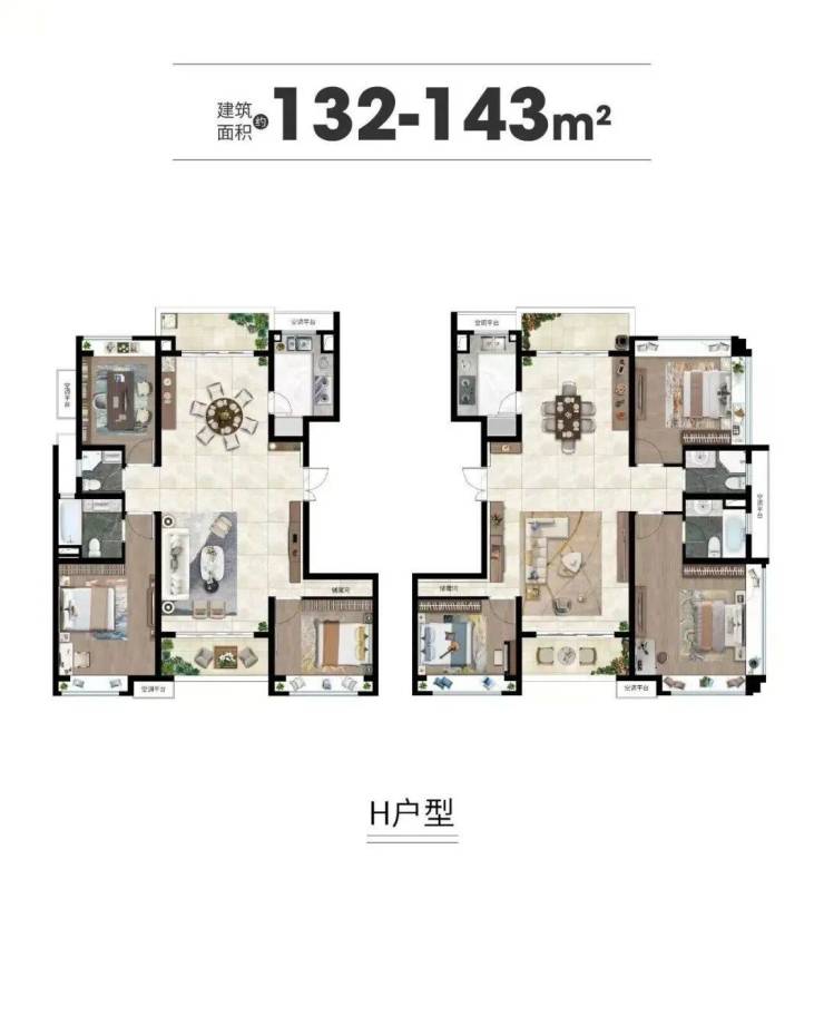 【御沁园】七期将推出3栋18F高层住宅,两梯两户无连廊设计;将推建面约132~172㎡三房户型,其中: