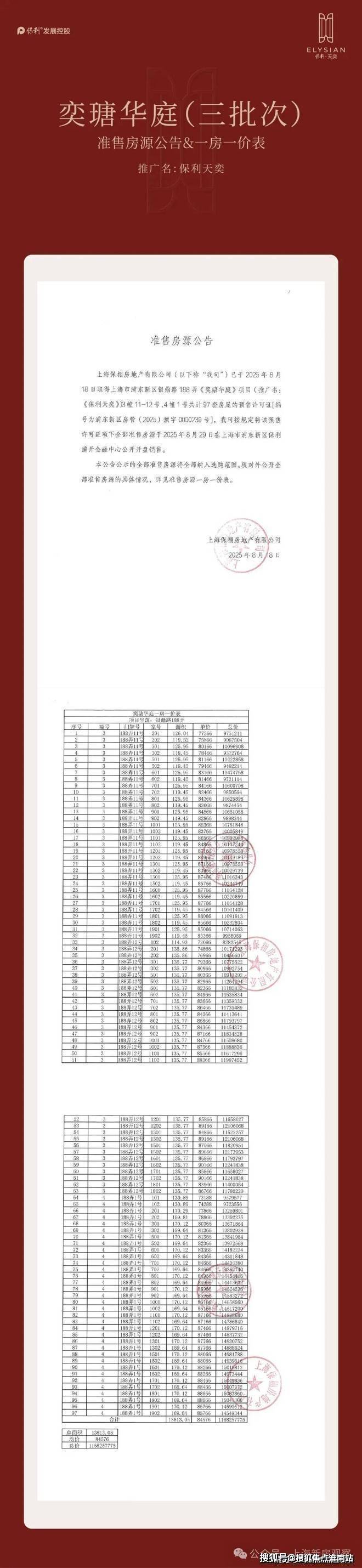 上海浦东唐镇保利天奕官方电话:400-8818-994✔(官方售楼处预约看房热线)上期一房一价表如下: