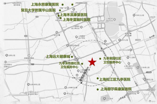 项目周边聚集多家三甲医院和高端康复及专科医院:如复旦大学附属华山医院虹桥院区、上海冬雷脑科医院等。
