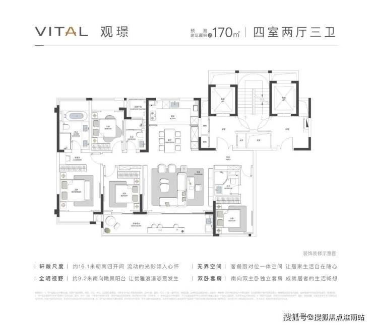 ◆约8000㎡核心景观轴、约2400㎡两个尊享庭院、南北各区设共享花园和私享花园。