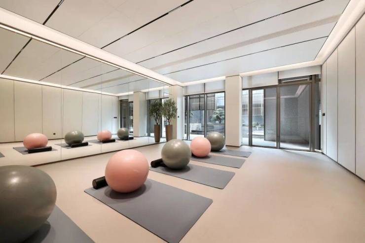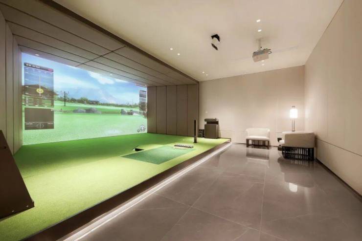 容积率仅有1.2,自带专属高端会所,设计了下沉式庭院,高尔夫球练习室、台球室、健身房、瑜伽房等等。