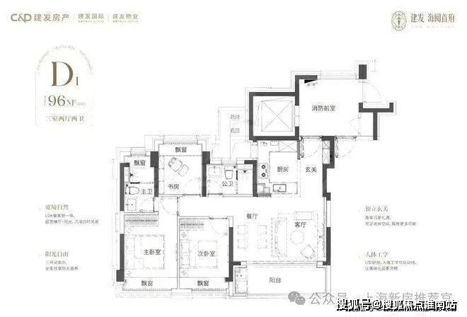 建面约96㎡3房2厅2卫